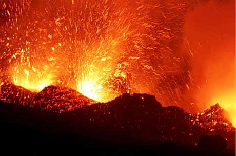 Le Stromboli en activité le 01/01/2003 Cliquez ici pour voir le Stromboli en direct : caméra situé a 890 mètres du sud-est du volcan