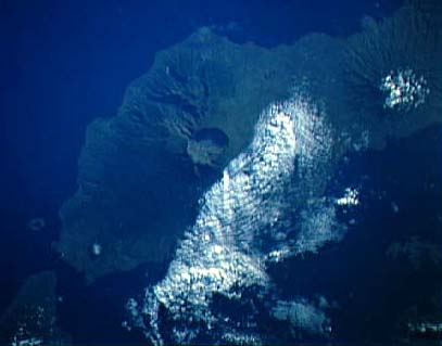 cendres. "Le seul désagrément est de nettoyer le pont des navires recouvert à chaque fois, par les retombées de cendres". Cependant, situé à 40 km des côtes les plus proches, l'activité du volcan n'inquiète pas particulièrement les populations locales.