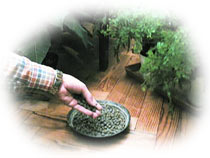 Autre solution, placer les pots sur un lit de billes d'argile, dans un bac peu profond que vous remplissez d'eau. Les racines ne touchent donc pas l'eau, et l'eau en s'évaporant crée autour de la plante une atmosphère humide bénéfique. |