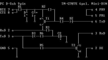 und C1 stabilisiert. Aus dem TxD-Signal des PC wird ueber D3 und R6 dann noch