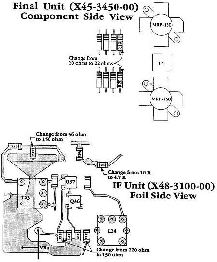 In order to case operator concern we recommend replacing R17, and R18 on the final unit (X45-3330-00) with ceramic resistors whenever replacing the final transistors. These special resistors have been designed to open quickly if the current rating is exceeded. This prevents smoking and the odors associated with burning resistors.