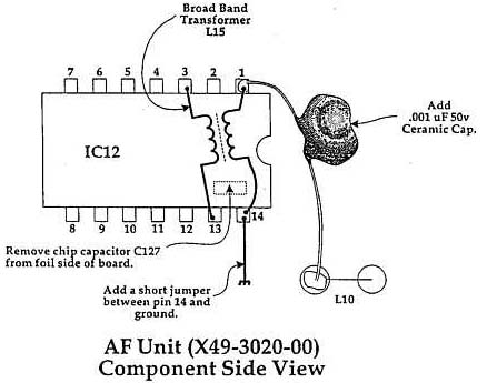Caution: This modification requires soldering equipment rated for CMOS type circuits. It also requires familiarity with surface mount soldering techniques. If you do not have the proper equipment or knowledge do not attempt this modification yourself. Seek qualified assistance from your closest Kenwood Service Center (Long Beach, CA, or Virginia Beach, VA).