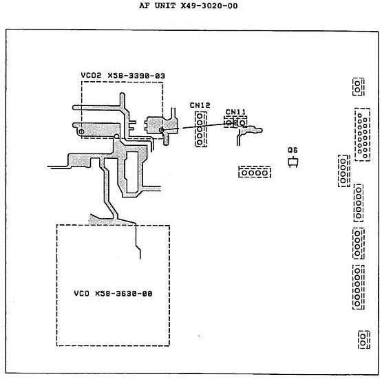 A small amount of RF feedback is felt on analog switches IC5 and IC6 in the AF unit. This RF causes the timing circuit to actuate briefly when the mode is changed with VOX ON.