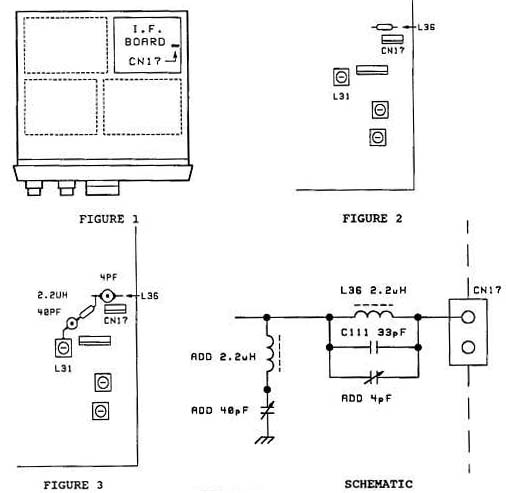 Some TS-950SD owners have reported a transmit image at 18.115 MHz that cause the receiving station to hear distortion on the carrier. If the operating frequency is shift 3 KHz above or below 18.115 MHz, the image disappears. This modification will lower the image level from -30 dB (worse case) to better then - 40 dB by installing a trap on the 455 KHz I.F.