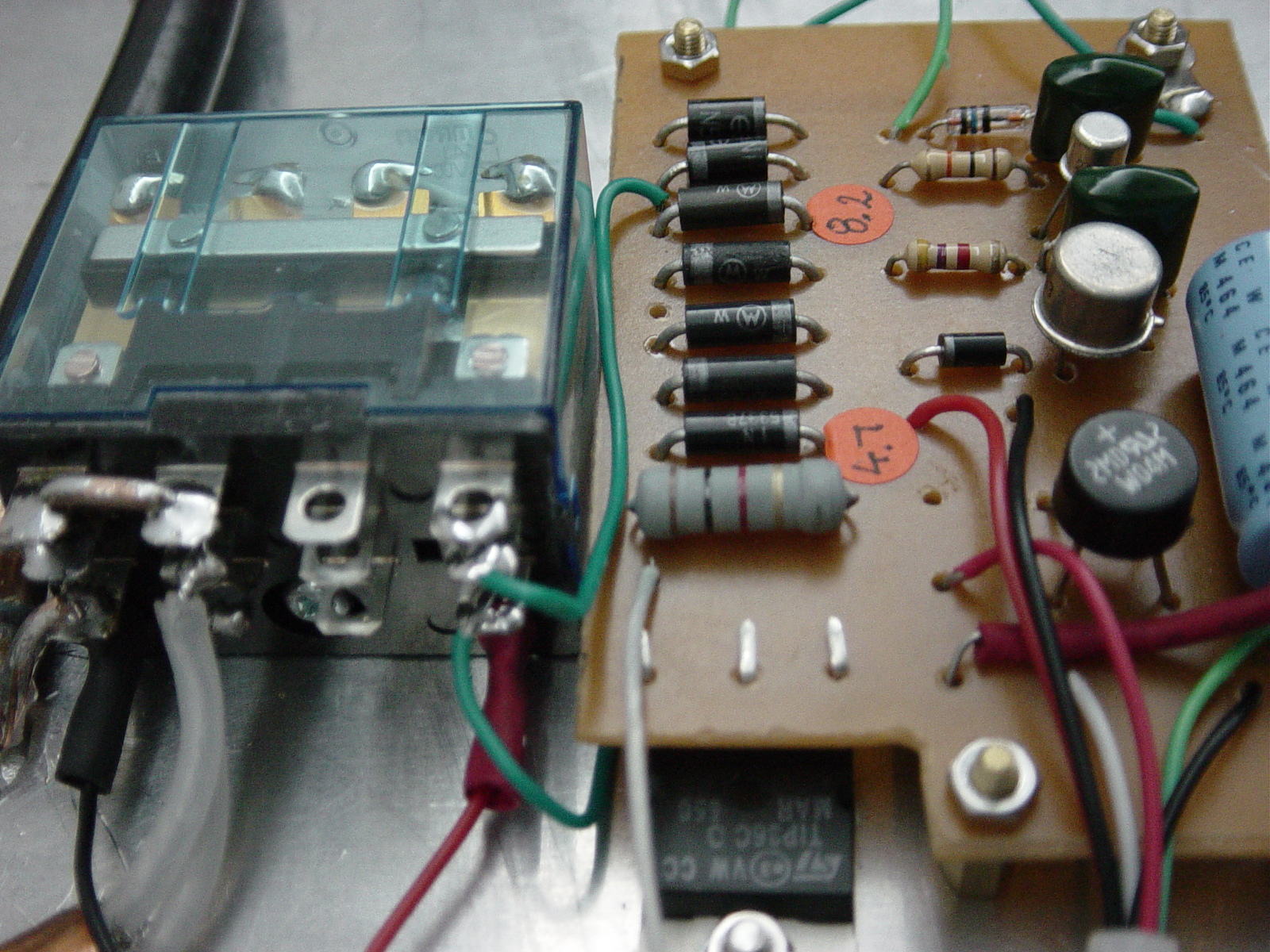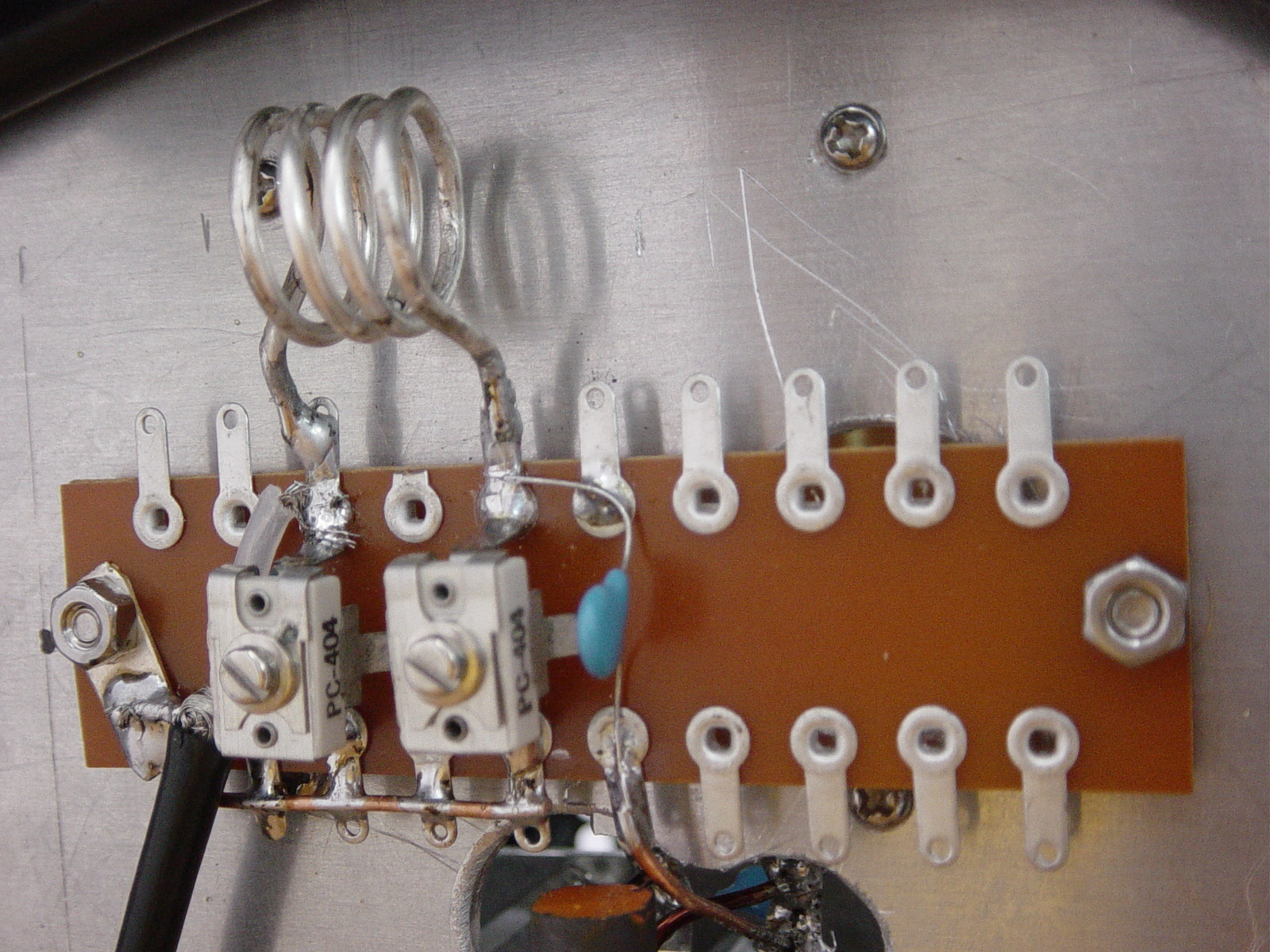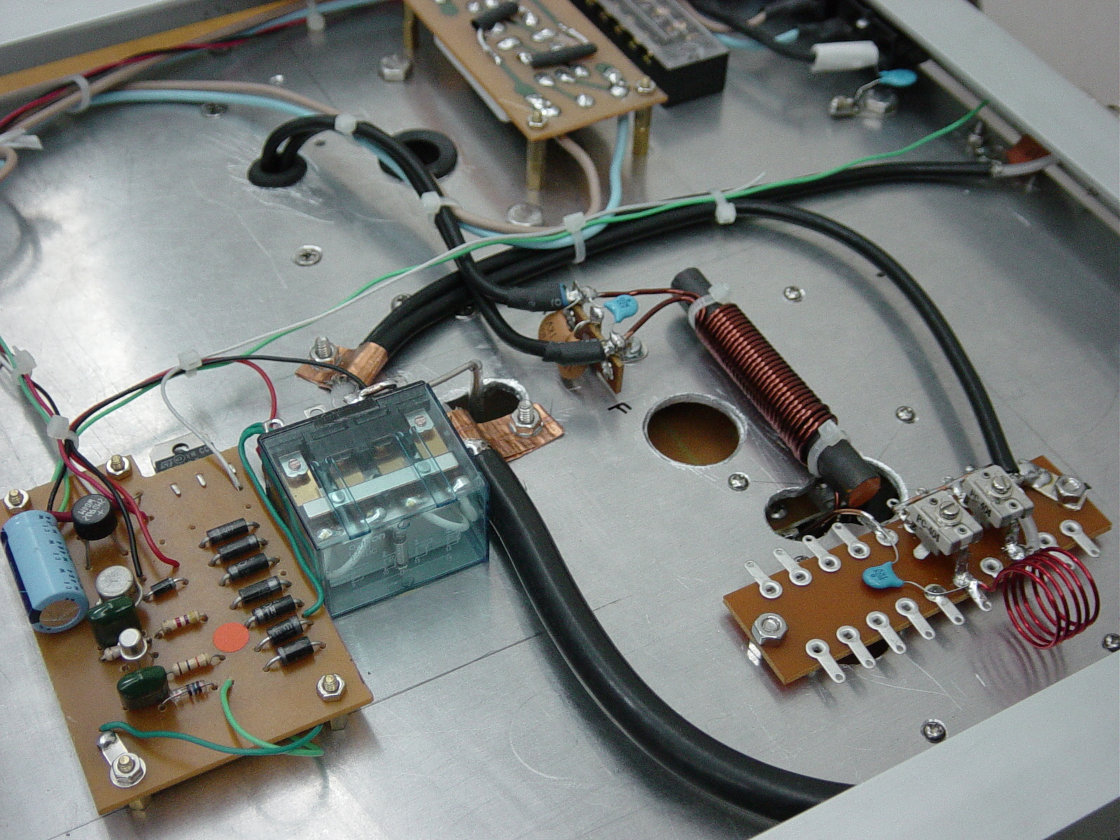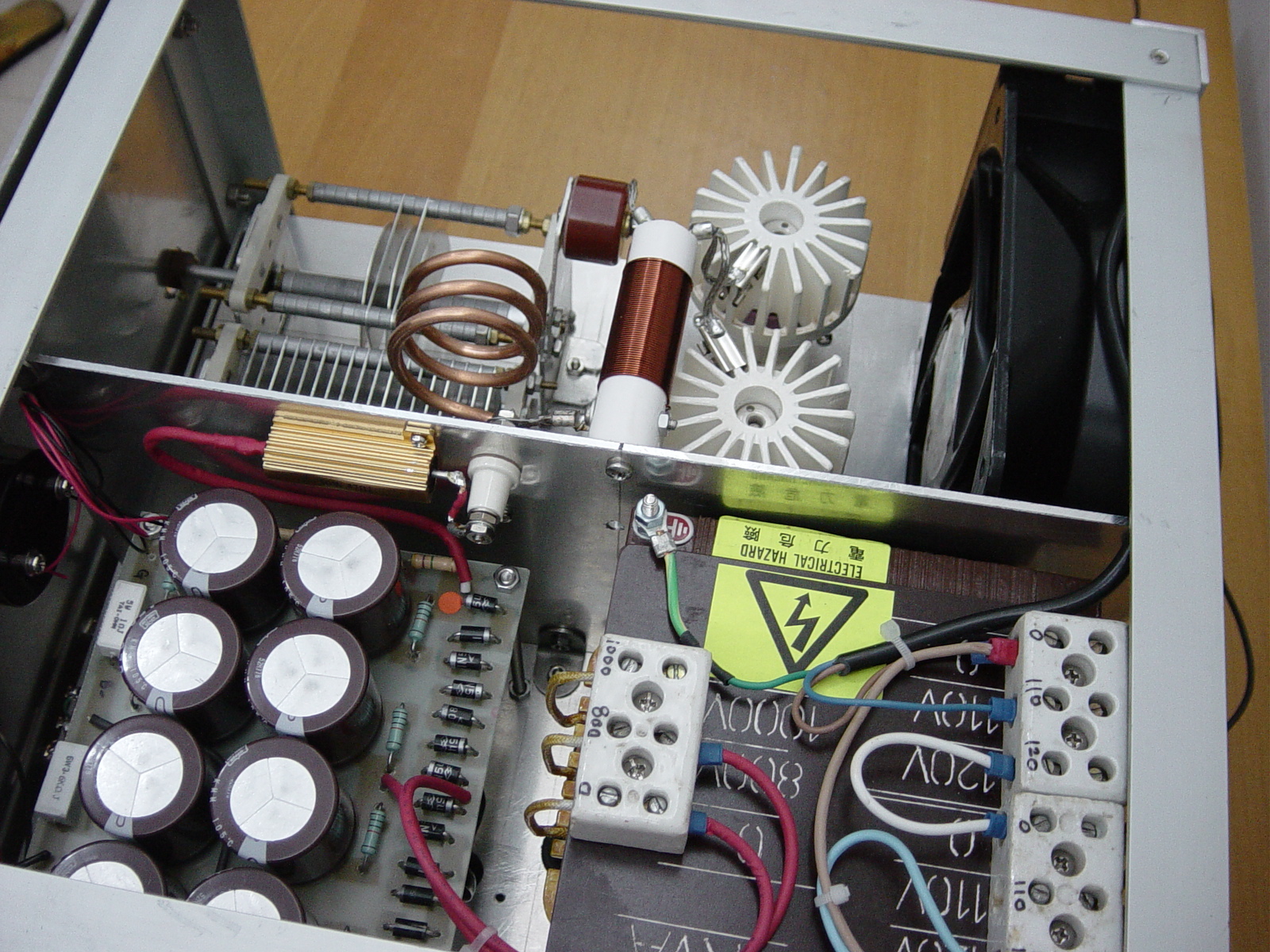 1) collect of parts -For the reason that commercial tube socket is not available and searching around the net and find it is available from W4ZT -Power transformer, still searching around if it is available to wind in local market. Otherwise, may need to find in Mainland. 2) Circuit - I refer to use YU1AW design. 20 ft - 1 inch aluminum angle and cut into small section for building the chassis of the GI7B amplifier. It cost $95 dollars including the entire cutting fee. The chassis’s dimension will be at (360mm D x 350mm W x 200mm H ) Cut six pieces of aluminum sheets for the front panel and partition for the chassis. It cost of HK$215. I also locate one winding transformer company and ask for the quote for a 1000VA transformer at a reasonable cost. Size is approx. 6”x6”x6” and delivery time is one week. For the plate coil, it is quite difficult to get small diameter of copper tubing. It needs to buy at least a roll of several meter of quantity. So I give up this kind of material. Looking around and thinking of using surplus short length of hard line cable, center conductor is 5mm diameter. Wound 4 turn, inner diameter 40mm. Doorknob capacitor is 1000pf 15KV purchased from Mainland China. I have made the PCB Board Fabrication for High Voltage and Soft Start. This weekend, will go for the Software Key and Bias PCB. I also drill two big holes for the front panel meter High Voltage and Plate Current meter. Although it is a tough work, which took me an hour to complete, it looks very nice. I bought one 12V 10A contact rating Omron relay from Apliu Street, which is for the T/R switching. The plate choke is made from 50-turns, 22swg = 0.711 mm (purchased from UK), close wound on a 80mm length of 20mm PTFE rod(purchased from Apliu Street) AC 220V input to primary winding (240V) and secondary measured at 800V tapping is 730V. After rectifier and voltage doublers, measured at 2050V DC. It meets with the plate voltage of the GI7B. The soft key and bias board PCB is mounted at the bottom, nearby the T/R relay. Logan (VR2XRW) gave me a 10mm ferrite rod for the filament choke, it is in place all together with the input tune, consists of two Arco variable capacitors and 15mm dia. coil. All connections and perform initial test at the input SWR. At firs, the SWR is quite high with 1:3 , modified the coil to 4 turn 13 mm dia. with good result at 1:1.2. After that, connect plate voltage and measured the plate idle current at 80mA, which indicated it is correct. First RF test and found the tune variable capacitor totally meshed out, then I removed few plates and measured the capacitance is in between 4.5 to 10 pF. The tank coil also cut one Turn, now is 3 turns. The load capacitor is half-meshed, just fine. After that, test Starting with 5 W of drive from a TS-600, gave 85W on the output first time, which equal to about 12.3 db gain. Increasing the drive up to 10W brought 150W output, equal to 12.07 db gain. I stopped at this point because the 150W dummy load already very hot, will test later with a high power one. I also installed the top cover with ventilation holes. It is connected to a BIRD Dummy Load (Model 8401) and 43 Watt Meter and easy tune to approx. 700W output. End of the project. Look forward to hear you on the magic band. Finally, I made a new power-on delay relay circuit (soft-start) PCB yesterday. The zener diode which create a high turn on voltage for the Darlington connected transistor pair. The delay is approx. 3 seconds using 47K resistor and 100 uF capacitor. Longer delays can be obtained with a large capacitor. I use the modified SB-220 with full output for daily use. This DIY amplifier is the backup. I don't want to miss any new entity when band open. hi. Also, I learned a lot during the building process.
