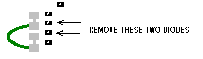 Using a soldering iron, remove the middle two diodes.