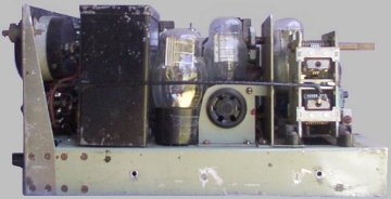 The chassis fitted into a metal box with a hinged lid that housed the speaker. It was held in by 5 screws through the sides of the case. The dimensions (closed) were 15 ˝” long by 8 5/8” wide by 6 1/8” deep (394mm L x 219mm W x 156mm D). It weighed 19 ˝ Pds. (8.86 Kg) in the haversack. The battery block was 15 5/8” long by 8 ˝” wide by 2 7/8” deep (397mm L x 216mm W x 73mm D) and weighed 3 ˝ Pds. (1.6 Kg) including the haversack and cables.