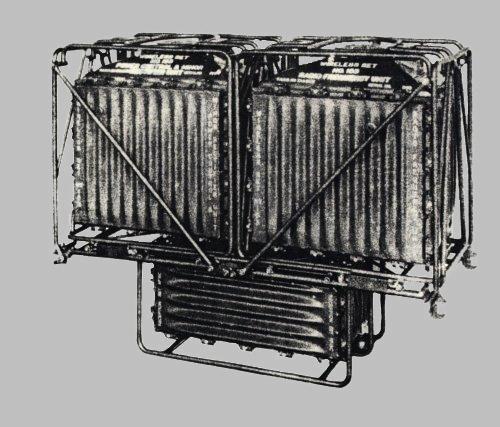 The set alone weighed 74 ¾ pds (34 Kg) and was 28” wide x 13 ½” deep x 10 ½” high (711mm W x 343mm D x 267mm H). When fitted into the carrying frame it weighed 93 ½ pds (42.5 Kg) and was 31 ¼” wide x 18 ½” deep x 15” high (794mm W x 470mm D x 381mm H).