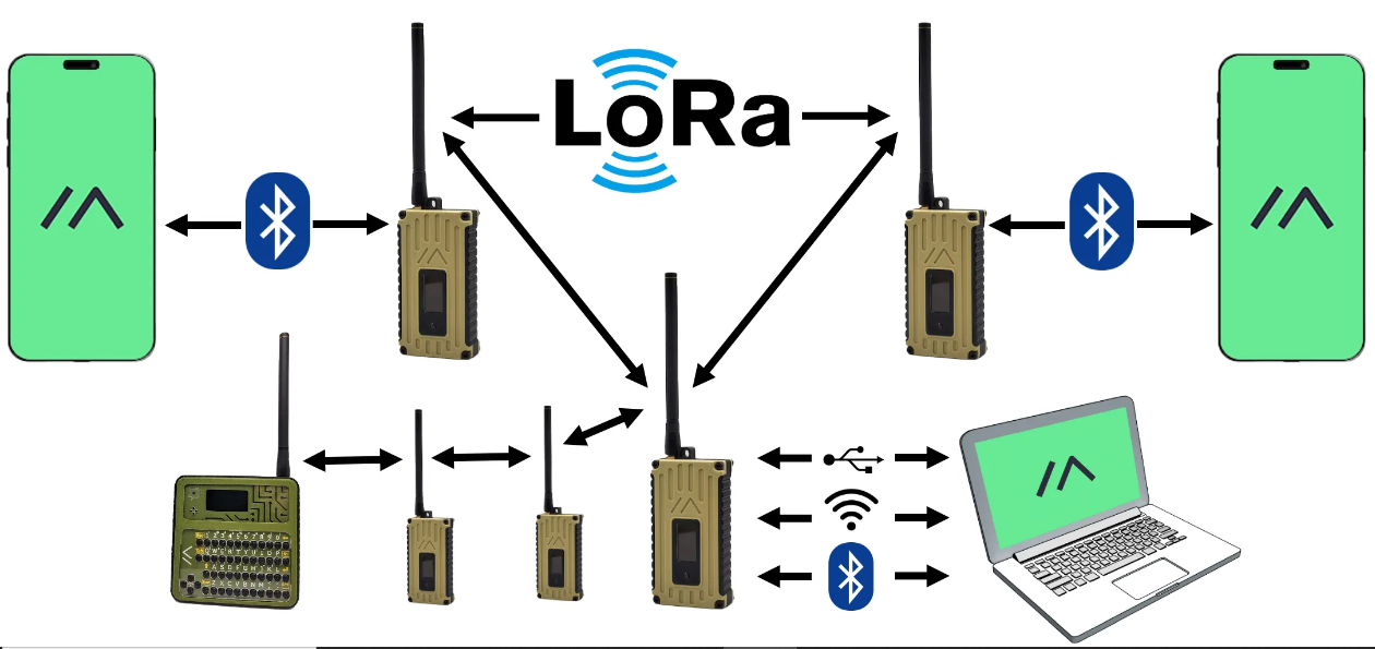 MeshtasticŪ is a project that enables you to use inexpensive LoRa radios as a "long range" off-grid communication platform, inareas without an existing or reliable communications infrastructure. MeshtasticŪ uses "LoRa CSS" to communicate. LoRa is "Long Range" LoRa is a wireless modulation technique derived fromChirp Spread Spectrum (CSS) technology. It encodes information on radio waves using chirp pulses,similar to the way dolphins and bats communicate. LoRa modulated transmission are robust against disturbancesand can be received across great distances. How it works! MeshtasticŪ utilizes LoRa, a long-range radio protocol, which is widelyaccessible in most regions without the need for additional licenses orcertifications, unlike HAM radio operations.These radios are designed to rebroadcast messages they receive,forming a " Mesh network."This setup ensures that every group member, including those at thefurthest distance, can receive messages. Additionally,MeshtasticŪ radios can be paired with a single phone,allowing friends and family to send messages directly to yourspecific radio. It's important to note that each device iscapable of supporting a connection from only one user at a time. LoRa is ideal for applications that transmit small chunks of data with low bit rates.Data can be transmitted at a longer range compared to technologies likeWiFi, Bluetooth or ZigBee.These features make LoRa well suited for sensors and actuators that operate in low power mode. Lora can be operated on the license free Sub-Gigahertz bands, for example,915 MHz, 868 MHz, and 433 MHz. It can also operate on 2.4 GHz to achievehigher data rates compared to sub-gigahertz bands, at the cost of range.These frequencies fall into ISM Bands that are reserved internationally forindustrial, scientific, and medical purposes. Comparing LoRa to Cellular, Wifi and Bluetooth ranges.