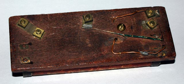 The very unusual battery consists of two squares of zinc and a hard rubber