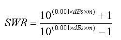 - for a quality 23,5dB/100m (RG-58C/U); SWR= (10^0.705 + 1) / (10^0.705 - 1)
