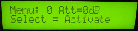The status readout show the selected frequency band, and attenuator mode