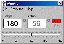 Using the ZL1BPU NATIVE PROTOCOL, it would be quite straightforward to develop PC DOS, LINUX or WINDOWS software to control the rotator. A simple DOS application ARC_1.EXE is illustrated to the right. It has a status window to the left (colour bar), status in text, and a bar graph heading display. As the heading changes, the pointer moves, and the pointer colour also follows the status. The little arrow indicates the requested heading. This software will operate in a WINDOWS DOS box.