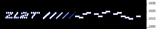 DF6NM's Chirppix DOS executable by Marcus DF6NM.Since the message starts life as an image (actually an image almost identical to how the message will appear on ARGO, as you will see), just about anything you can draw in a long thin strip can be transmitted! This certainly includes OOK Morse, FSK Morse, differentially keyed Morse (often erroniously called DFCW), CASTLE, Sequential multi-tone Hellschreiber (S/MT-Hell) and simple graphics. By changing the colour of the image (from whilte to grey) you can also accurately adjust the power level of the transmission in 6dB steps!