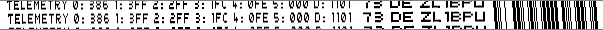 The font used is the ZL1BPU MOSAIC II 7 x 5 font, as can be seen in the following example. The slant is due to the 1% error in the micro reference oscillator frequency at the time of recording.