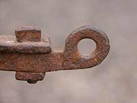 Photo 9 shows the hole for the chain. Rather than just punching a hole in the stock bar, the end has been carefully wrought to form this loop.