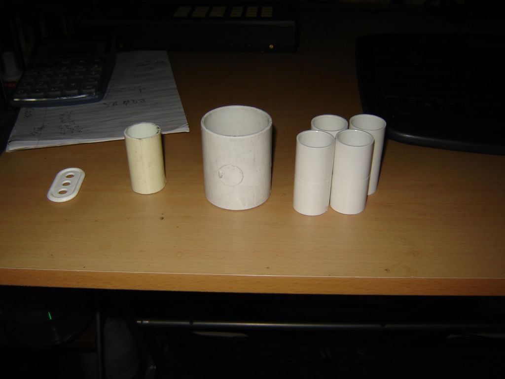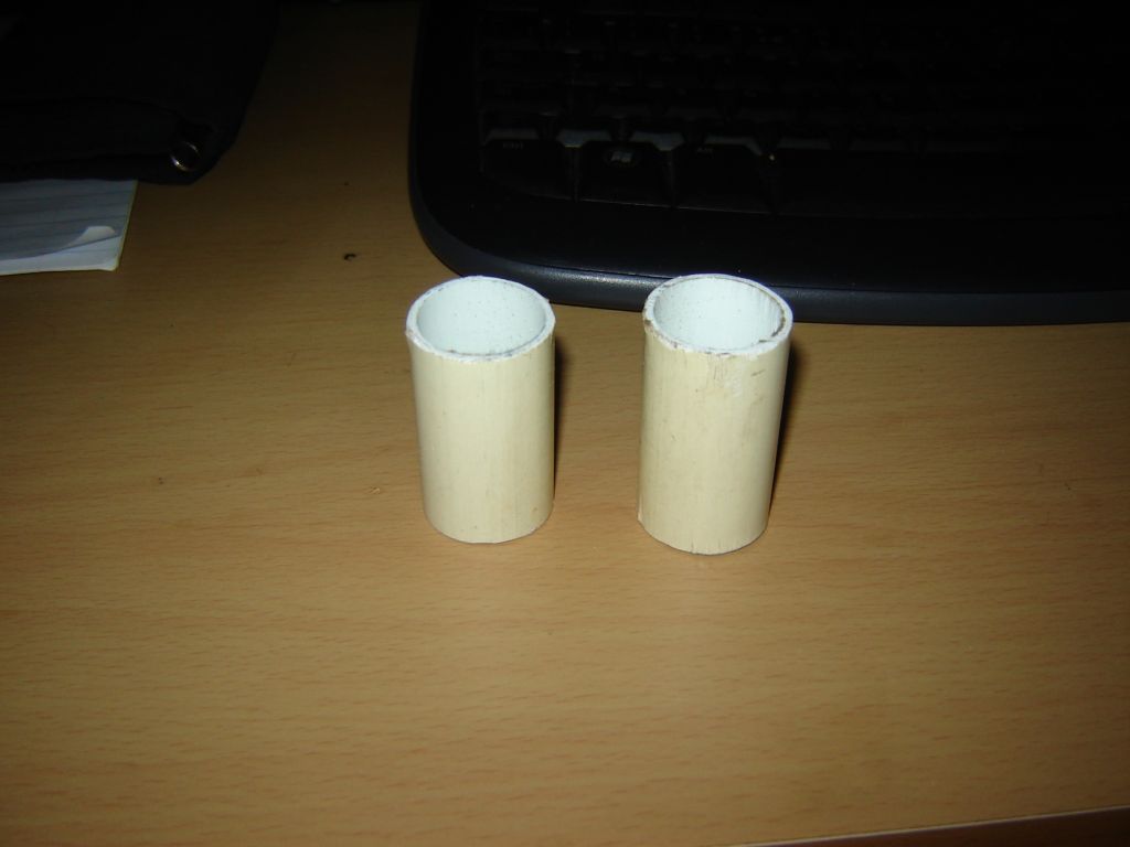 2 x 1" fibre Glass tube 2 1/2" long (as ABS not available in 1" size)