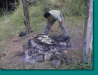 A seafood barbeque at the 3GØY camp. See how blurred the picture is! The camera operator (anonymous!) was obviously drunk and was removed from the operating site. Don't drink when operating!