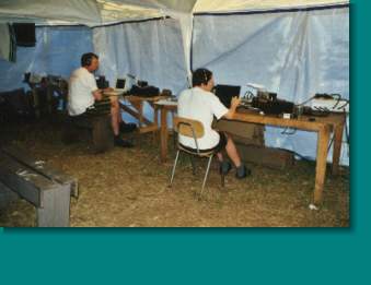 Tom, DL2OAP, operating (we assume operating the radio, it could also be computer games on the laptop).