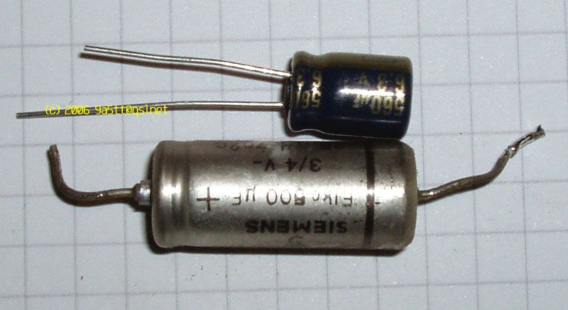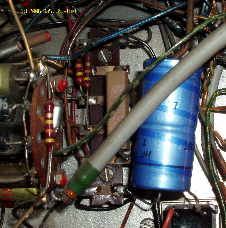 Single cap was removed at a time and replacement one soldered immediately. Such way of work reduces possible mistakes. Often is easier to cut away the wire close to a component then disturbing the soldering point. Modern electrolytics have reduced size, compared to old ones. I doubt they will last 40 years like their old relatives :-) Part One - Part Two - Part Three Images (C) 2006 Tomislav Kordaso, 9A5TT |
