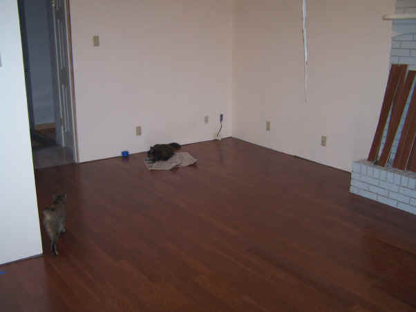 flooring planks down. Janet and I had multiple cat footprints to clean