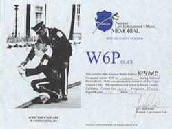 Special Event Station W6P This is the most important item in my wallpaper colection--- my first HF contact ever with my call from my home station! I had passed my 5 wpm code test, upgraded to Technician Plus, and had puchased a Ten-Tec Scout. For an antenna, all I had was a tiny Radio Shack antenna tuned to 10m. I couldn't believe I reached all the way to California. |