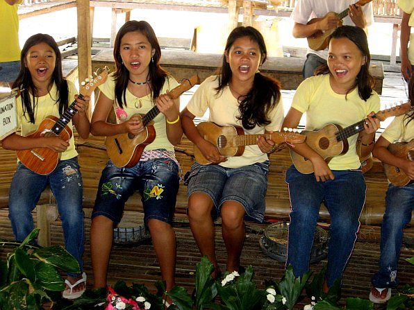 Bohol's famous floating restaurants ply up and down the Loboc River. Guests dine on a rich smorgasbord of local delicacies while enjoying the sights and sounds that slowly drift by. Halfway during the voyage is a break point where waterfalls splash into the river and troupes of animated local kids delight everyone with energetic song & dance routines. Watching them sway in unison while playing ukulele reminded me a bit of Hawaii, which was an unexpected delight in the middle of the Visayas thousands of miles away from home.