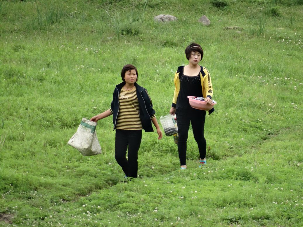 Cutting across some farmland below the Tumen River bridge brings us right to the riverbank and directly across from a North Korean border guard who is quite curious about the sudden appearance of a Caucasian face right across the water from him.