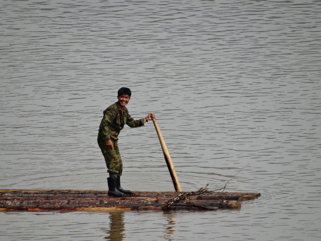 One of the most serene images on the trip, North Korean loggers floating down the Yalu River. Despite the border signs saying "no shouting at Korea," we had a good time with these guys as we shouted greetings at each other and they lobbed every English word they had ever heard in my direction. Most of the 'conversation' made little sense, but it was a fun interaction nonetheless.