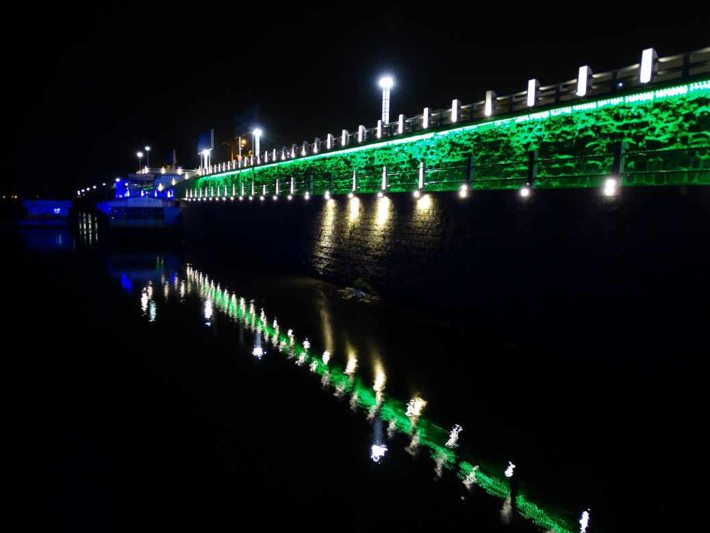 The Ji'an riverbank is awash in colorful neon at night. Across the river, North Korea is black. It's as if the whole country has disappeared into nothing...