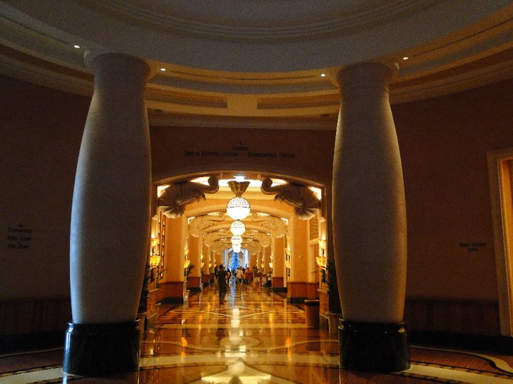 The palatial centerpiece of the Atlantis lobby. That giant blue sculpture in the middle is made entirely of interconnected, twisted glass tubes.