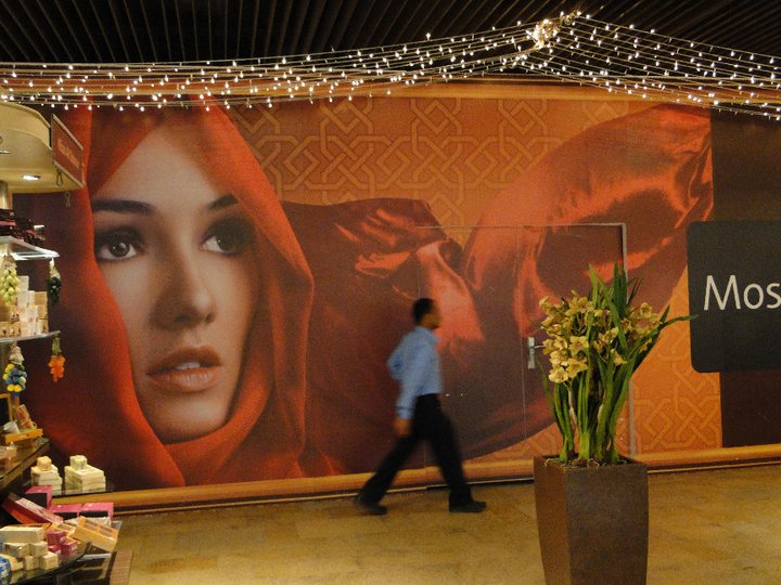 Dubai's shopping malls cater to every conceivable interest. I found the contrast in this display to be especially interesting: a scantily-clad female mannequin displayed next to a pair sporting much more conservative attire.