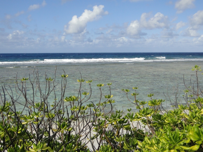 The road around Christmas Island is sat back from the sea for most of its length, so you see a lot of coconut trees but not a lot of water. But there are frequent dirt & sand tracks that make it easy to drive to the coastline for a bit of beachcombing whenever the mood hits. Here's one such shot of the end of a random "road" along the north shore.