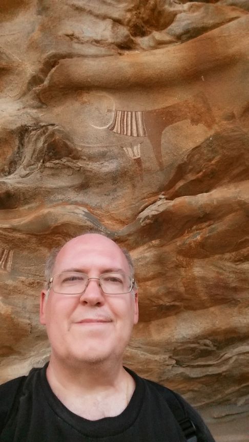 Admiring the 10,000 year old rock art paintings at the Laas Geel cave complex.