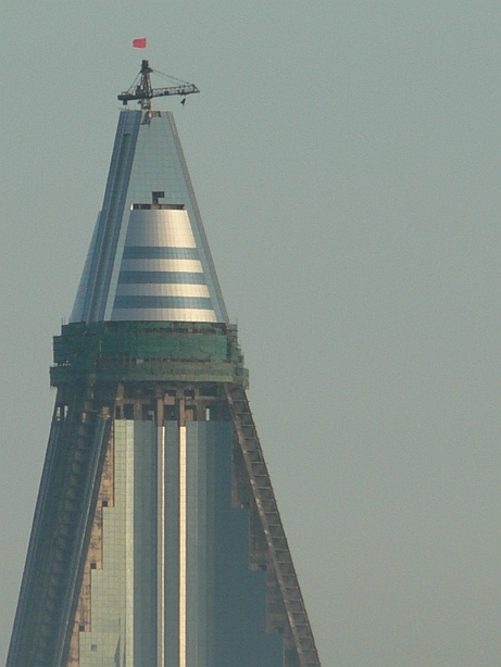 Pyongyang tour guides used to pretend the hotel didn't exist and never mentioned it to tourists -- despite the fact that it is simply too big to possibly ignore. But when relentlessly pressed by me, I finally got one guide to give me a target completion deadline: sometime in the year 2012.