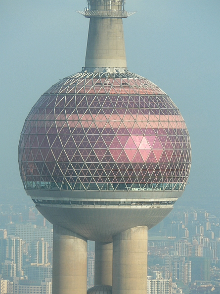 Going to the top of the Oriental Pearl Tower, the centerpiece of the Pudong skyline and the tallest building in all of China until 2007. The structure functions as a TV Tower, but its futuristic shape makes it one of the most photographed and visited buildings in Shanghai. It is composed of 11 spheres, big and small, many of which can be toured. The highest lookout is in the bauble that is 1,150 feet (350 meters) above the city.