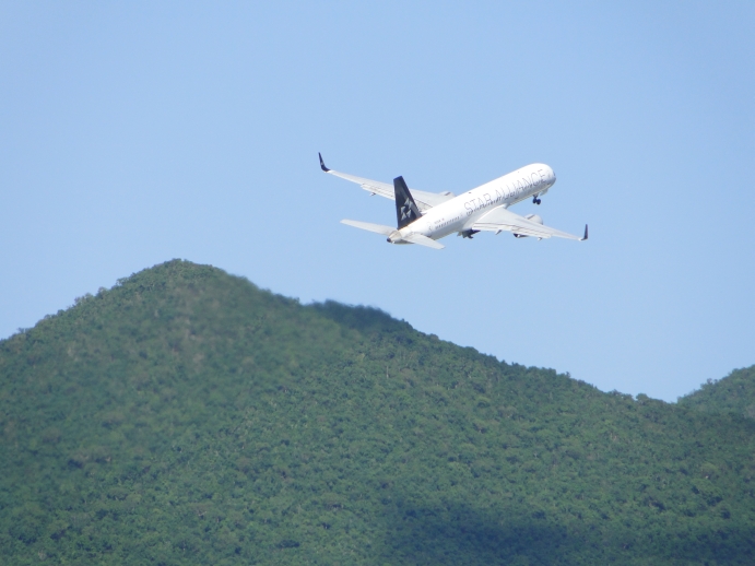 View from one of the tables at the Sunset Bar. For those who don't want to stand directly underneath landing aircraft or be jet blasted by planes taking off, their tables offer nice views of the planes from a safer distance away.