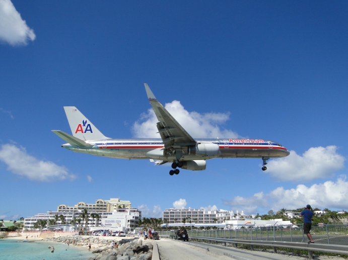 Another American Airlines jet whooshes by, this time with the new AA livery...
