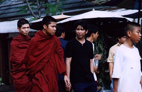 Thailand's seemingly irreconcilable contradictions are summed up best by the two faces that the country projects to the outside world. On the left, a glimpse of serenity & devotion from one of the monks who form a mainstay of Thai society; on the right, the face of one of the estimated hundreds of thousands of sex industry workers who have given Thailand one of the wildest reputations on earth.