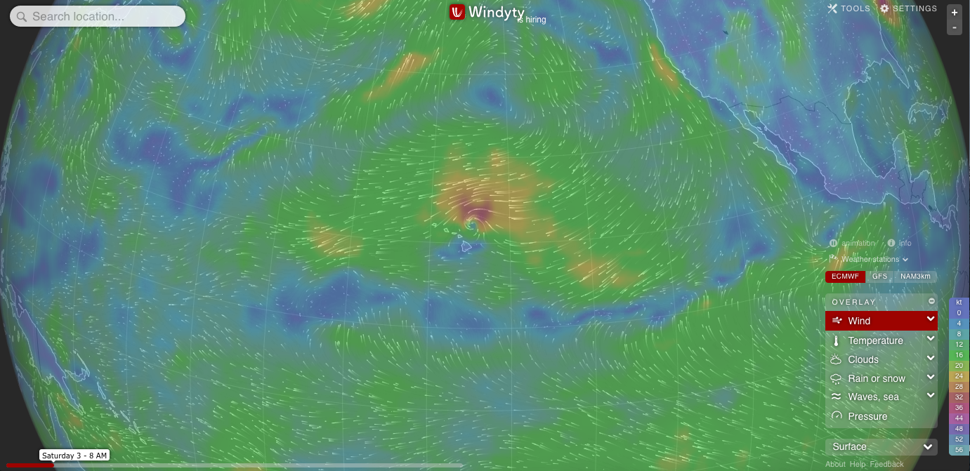 Hurricane Lester approached from the east, and continued north of the Hawaiian Islands. On Thursday, September 1, 2016 all islands except for Kauai were under hurricane watch.