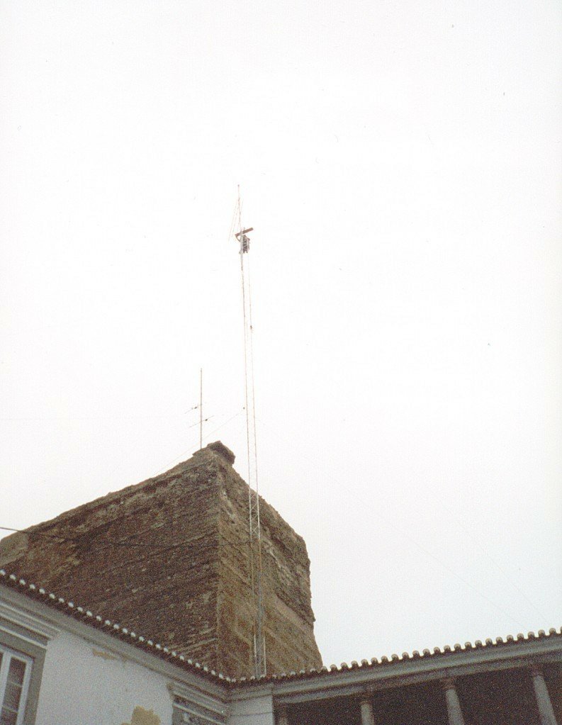 Nestas fotografias pode ver-se o trabalho que nos esperava, além da torre propriamente dita também era necessário desmontar o pára-raios e um troço de cabo coaxial.