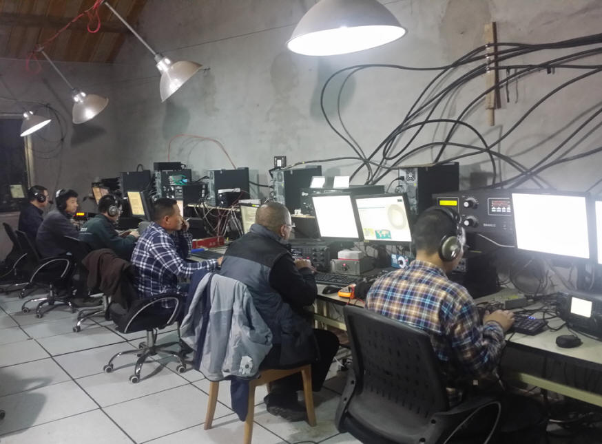 5个操作位:7800(BG5CAH)+3MN2013, 7600(BG5CLC)+3MN2013,K3(BA5CW)+1KFA,590(BD5XM)+3MN2014,590(BD5CEQ)+JAA升级版自动功放,BY5CD的功放都是自己的,而且这次全程都坚持下来了。而比赛用的机器都是临时借的,7800和K3应付比赛真的挺不错的,7600也很好,而很多op都不习惯590的声音,去年站长在新疆的体会590,这次我总算明白了,应付PILEUP的确有问题,也可能是我们不会用。我们也想投入更大的资金从而统一电台型号,但是这样压力太大,我有个大胆的想法,目前国内半DIY的产品越来越好,我可能会挑选一个型号再配上一个小型功放推动大功放,这样就做到了从天线、功放、电台甚至连BPF之类的附件都有中国特色,BY5CD是中国的竞赛台,我们为中国ham的产品而自豪。