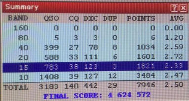 20米是个又爱又恨的波段,最近20米结束得很早,晚上7点基本上就没有声音了。20米的天线是EF420,架设在25米高度,驻波1.5左右,在没有干扰的时候表现超好,方向性很强,但当地晚上整晚到第二天早上8点半左右20米S9+的噪音经常出现,在756ProIII的屏幕上看起来就像扫频仪的频标,但要密集得多,幅度也高得多。在20米的操作就变成下午RUN了,但这势必影响15米的系数,而20米的加勒比分坑基本也泡汤了。在已有的情况下优化操作策略,这才是一个真正的Contester要做的。
