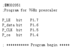 External RF signal with amplitude between -20dBm and +10dBm is fed into the analog front end of the IC. The amplified signal is fed into the divide by N circuit. This circuit consists of a programmable dual modulus divider and two counter registers. One register is the 13bit B register, the other is the 8 bit A register. The divider factor N is derived: N = B*P + A, where P is the modulus number, either 8,16,32 or 64. With different modulus number, the duty cycle of the output signal is different. Followed the divider is the MUX circuit. This versatile circuit can route different signals to the MUXOUT pin, and here we select the N divider output. The ADF4107 is a complete PLL IC with complex function, but here we only care about several things: (1) Make sure the chip is working under normal operation, not in idle mode. (2) Initial the A register and B register to set the divide number to be 500, here I use the by 16 modulus, the N = 500 = 31 * 16 + 4, so Reg A = 4, Reg B = 31. (3) Make sure the N divider signal is routed to the MUXOUT pin. To do this, we configure the chip as following: Reference Counter Latch: ..........HEX 00 00 04 AB Counter Latch:.......................HEX 00 1F 11 Function Latch:.............................HEX 40 00 22 With this configuration, the chip works as a 7GHz prescaler with division number of 1000, then we can read the frequency counter with unit of GHz. |