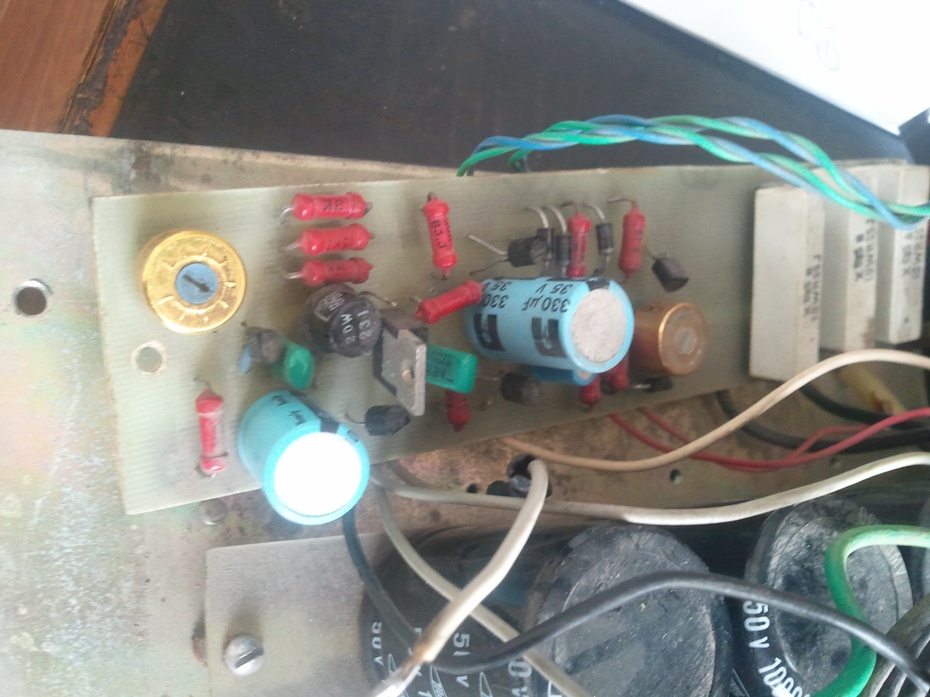 手头有可控硅,闲来无事,便想给这个电源加了一个过压保护。保护电路在输出电压上升到15v时启动。过压保护试验中,烧坏了几个可控硅,原因是忽略了保险丝的选用,必须换用快速保险,也就是F字样的。