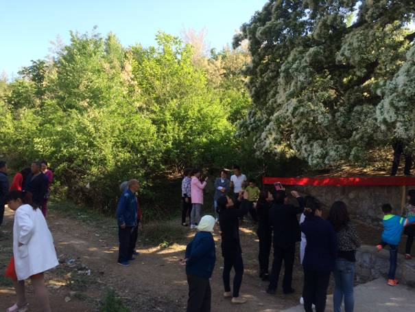 本月早些时候,微信朋友圈里转了这棵丁香古树的消息,听说本地的电视台也做了报道。所以最近的看客比较多。