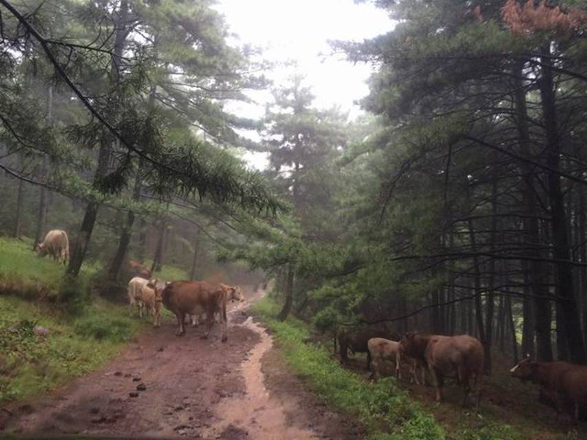 当地人放养的黄牛,到了冬季才要喊回村里避寒,其他季节就把它们放归山里尽享自由。