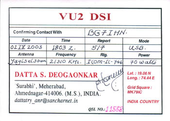 我喜欢和远方的电台进行通讯联系并交换卡片。现在,我通常采用下面这种彩色的卡片。 |