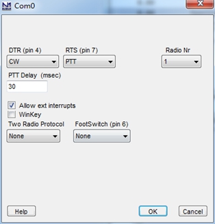 - 如果CW和PPT的控制和电台cat不是同一个串口,你可以另选一个串口,电台型号选NONE,勾选CW/PTT,然后按set进一步设置。