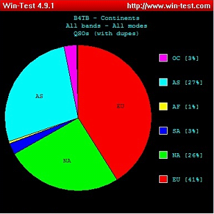 下午回来后,我决定要扭转形势,如果没有基数,再多的系数也没有用,特别是有些人光看QSO个数,虚荣心作怪,决定下午不管系数了,使劲RUN一把,没想到俄罗斯人很配合,12点多,俄罗斯台一个接一个进来,几乎都不间断,有些人认为中午1点钟是垃圾时间的论断不攻自破,RUN了2个多小时,心里不安起来,觉得这样做可能有点过火,于是开始搜索系数,并转换波段看看运气。下午15米对非洲的传播相当不错,到北京的信号都是Real S9,两天下午的15米,5H,5R,9J,A2,C9,D2,ZS等,基本上都是一遍叫通。到了5点多以后,北京已经很黑了,按照原来的打算,第一天的40米放在晚上8点以后再开战,5点半到8点的时间留给80和160米,因为这个时间是160米和80米对北美的窗口时间,如所预料的一样,除了无处不在的日本台以外,80米通到不少找上门来的北美电台,而160米,也收获了一个北美的系数。到了接近晚8点时数数看已经有700个台了,准备去40米RUN了,心里还是没底,这个凑合的DP能不能完成任务?开始半小时后,这个顾虑就打消了,虽然F/B不好,但看反映来说,效果还不错,就像钓鱼一样,大的没有,小的也将就。中间插了一小段时间的80米和160米,一直到晚上1点左右结束,结束的时候,看了一下QSO数目,大概1000多一点,离预想的QSO数目要少一些。第一天晚上1点到4点睡觉,4点起来后,感觉40米不错,懒得去看别的,一直在40米上呆到天亮。这可能是一个错误,如果能在这个时间段适当看一下160米和80米,第二天就不会有那么大的压力了。第二天的早上快到9点,干扰消失,于是在20米上呆了2个多小时,然后转到15米,期间做了一次身体活动,在活动的时候,把机器放在10米,不断呼叫,天线在ZL,VK,9M等方向转来转去,20分钟过去了,没有任何回应。